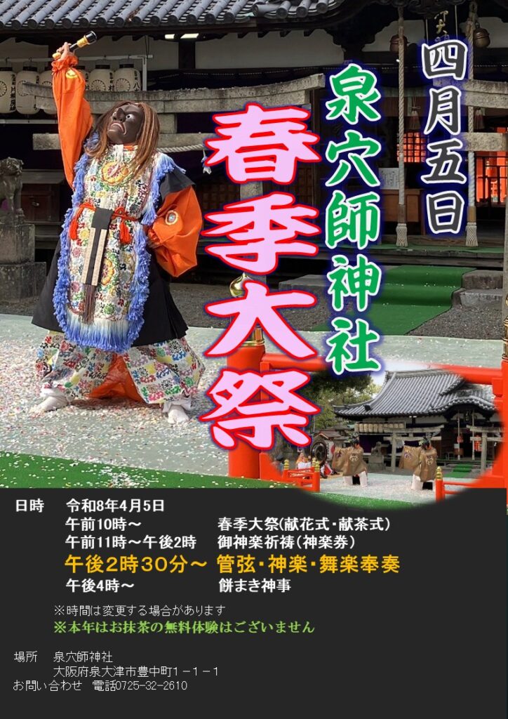 令和8年泉穴師神社春祭 管弦・神楽・舞楽 演目